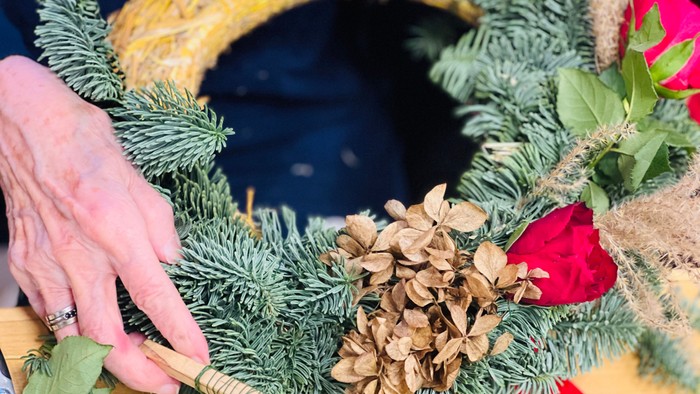 Kom og lær at binde en smuk julekrans, som du kan pynte med derhjemme eller lægge på kirkegården.